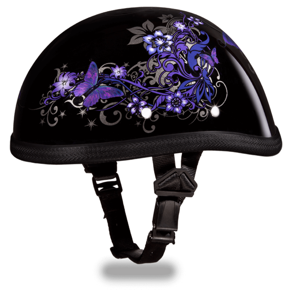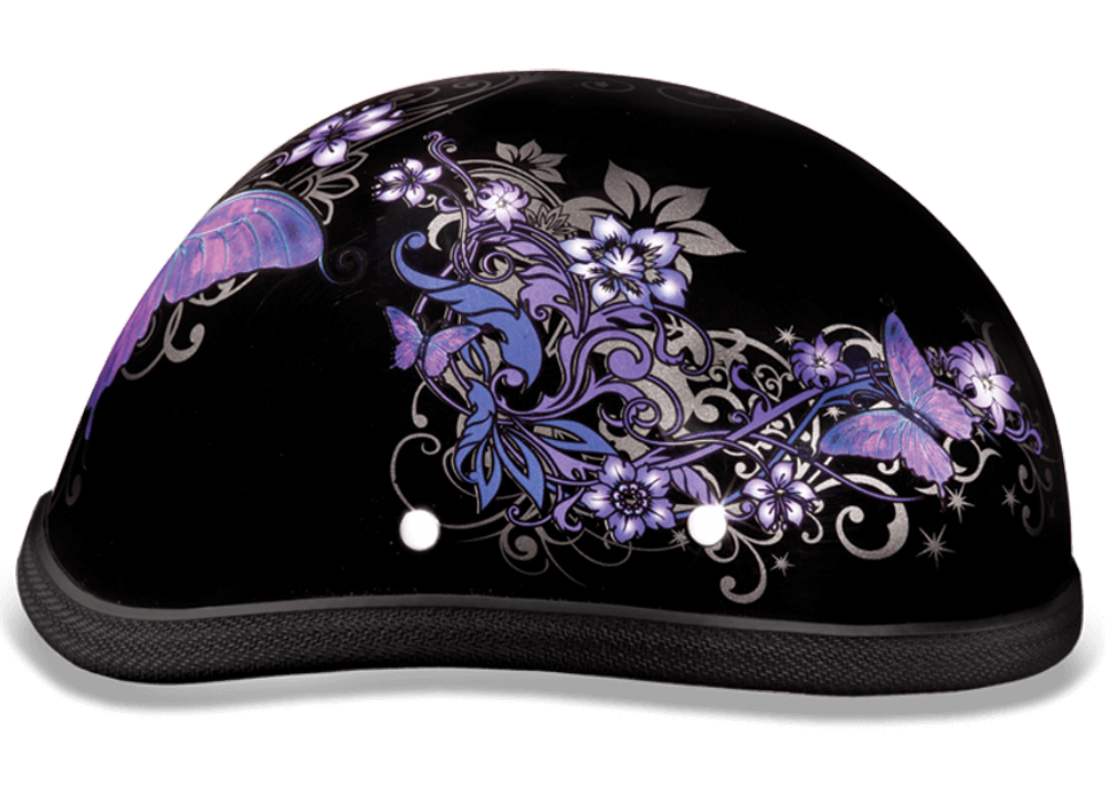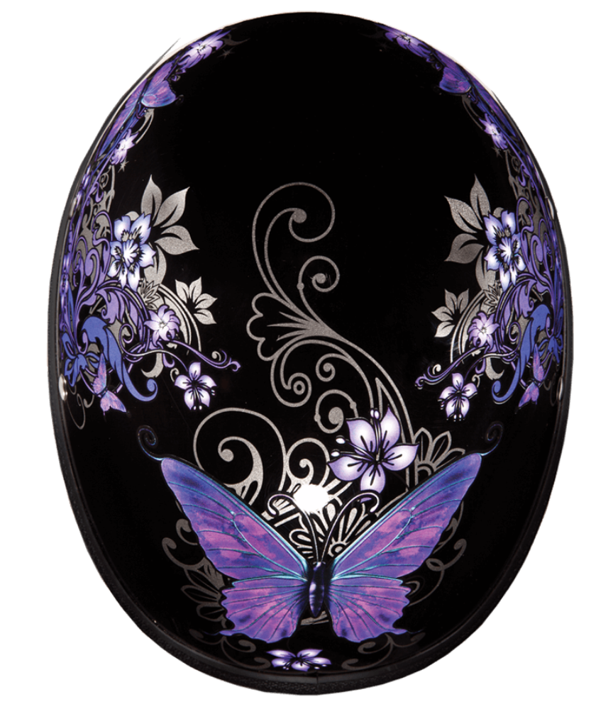 Our Premium Classic Eagle Novelty Item With The Butterfly Graphic Does Not Meet D.O.T. Standards. The Eagle Novelty Item With The Butterfly Graphic Is Fully Lined With A Custom Formed Interior For X-treme Comfort. Each Graphic Item Is Custom Designed And May Vary In Color Or Composition. This Eagle Graphic Novelty Item Has A Clear Lacquer Finish, Available Without Snaps/Visor Only. Free Head Wrap And Cloth Draw String Bag Included.