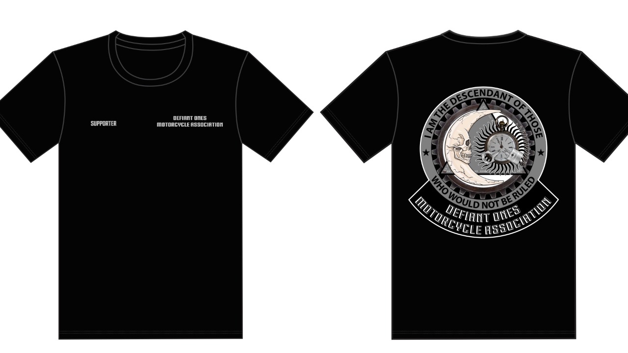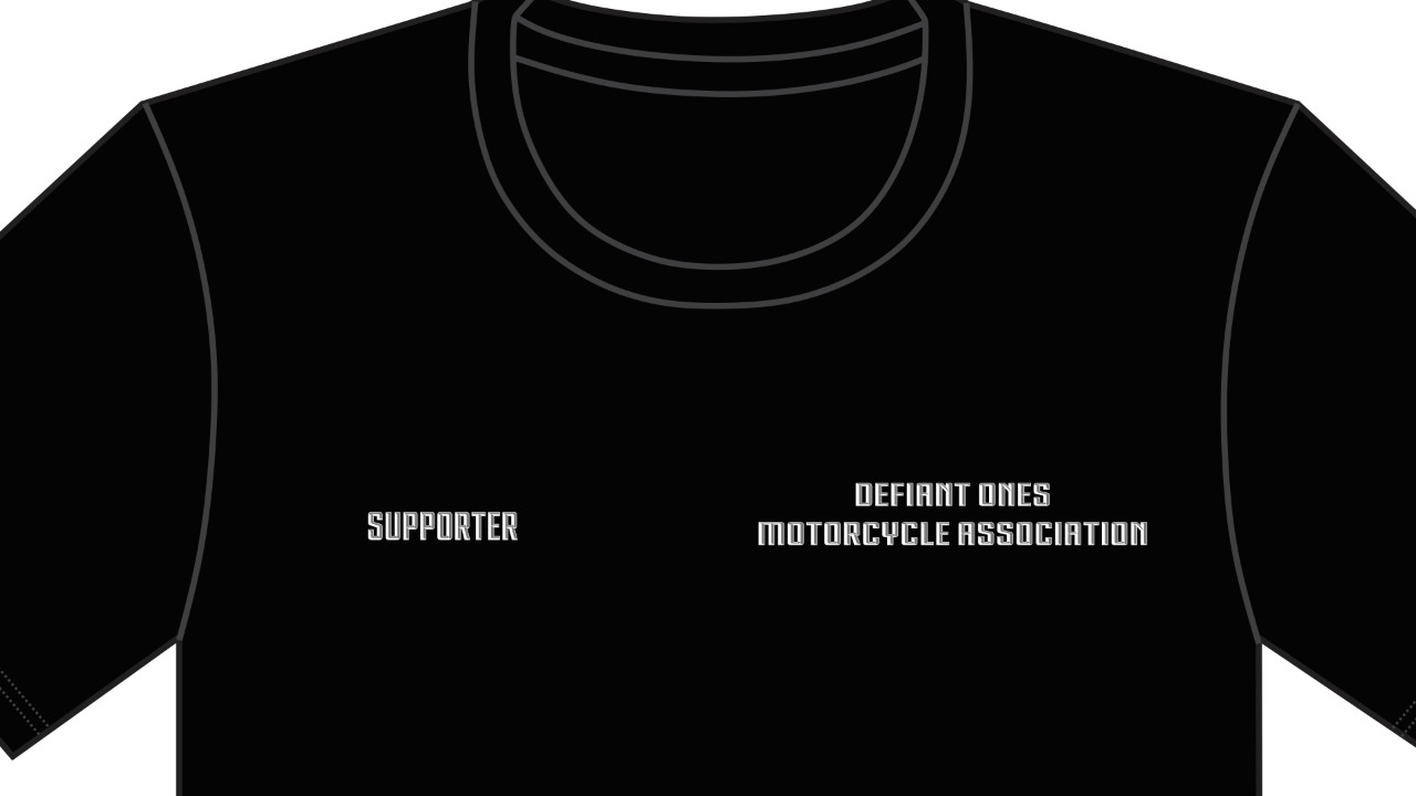 Defiant Ones Motorcycle Association has Designed a “SUPPORTER” T-Shirt for anyone that wants to SHOWCASE THEIR SUPPORT OF DEFIANT ONES MOTORCYCLE ASSOCIATION AS A NON-MEMBER. This exceptionally woven T- Shirt has added side seams for a quality fit, unisex sizing, shoulder taping, and 100% combed ringspun cotton, it ranks as a top favorite product. Its 4.2 ounce weight makes it an excellent choice for durability. We know you will love our T Shirt.