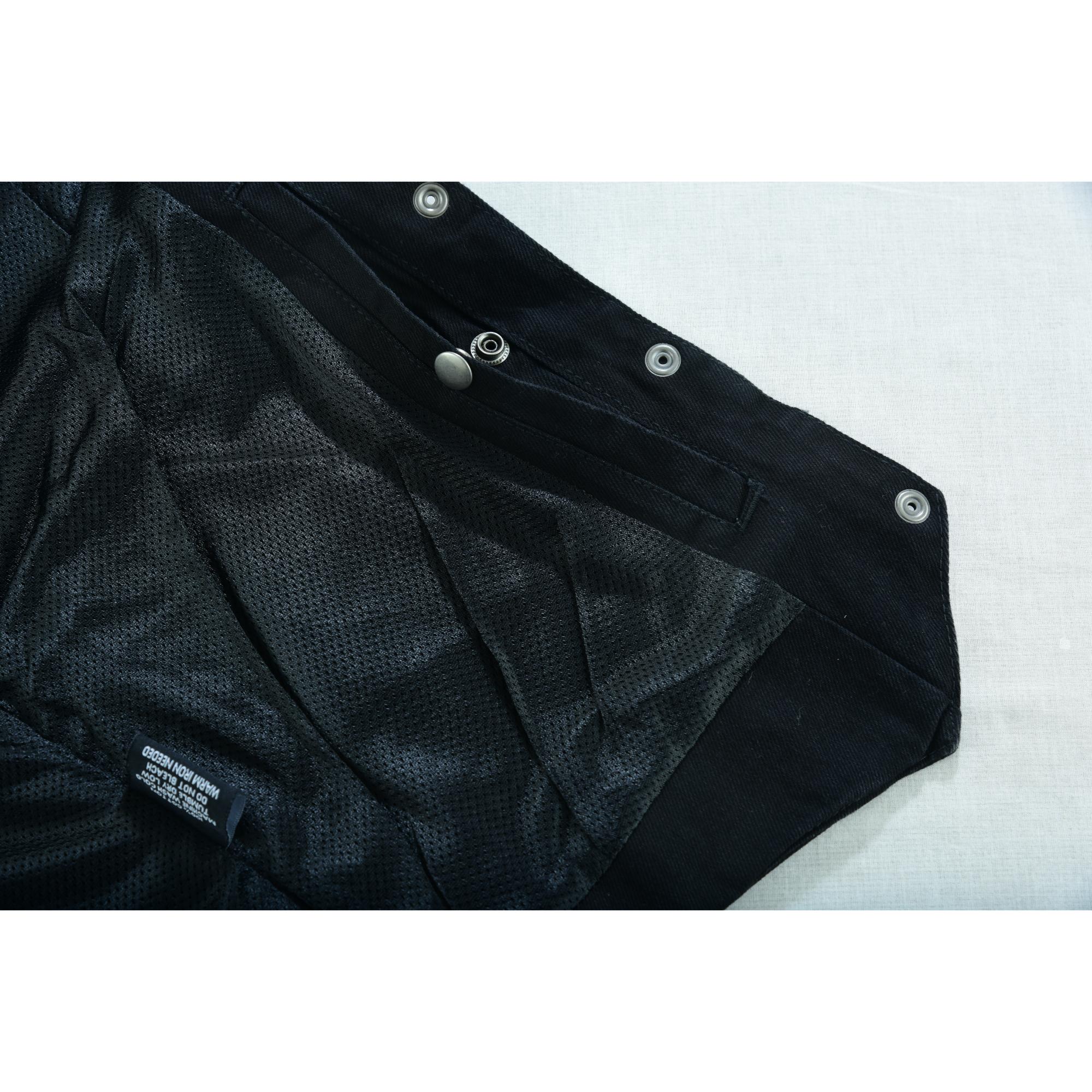 Why choose clothing from Daniel Smart Manufacturing for your next ride? We offer lots of perks. Place your order for our women’s black denim sides motorcycle vest today.