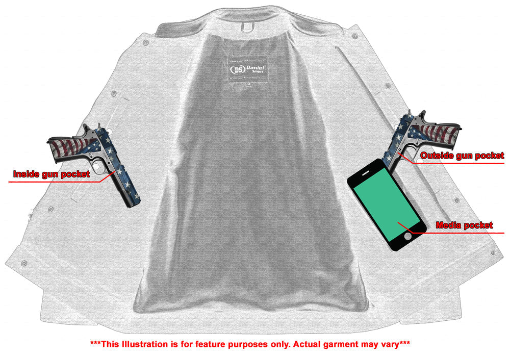2 upgraded style Smart Access Pockets. One between the snap and the zipper. Both made of special heavy-duty textile with built-in holsters and snap closure.