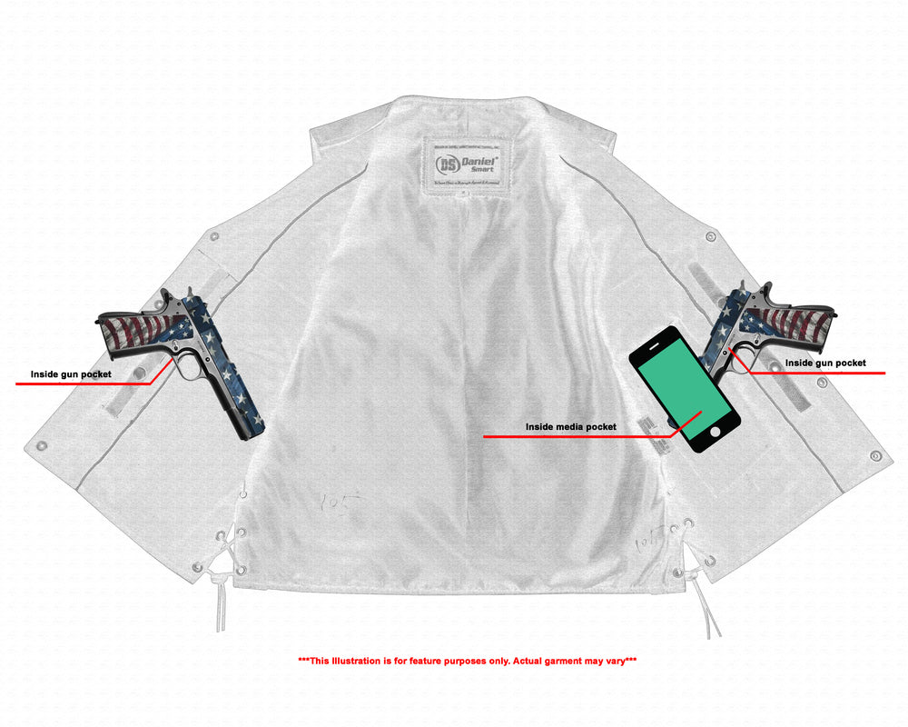 Adjustable leather vests are an essential part of any biker’s wardrobe. Vests provide the ideal balance between comfort and protection. Our men’s side lace concealed carry biker vest lets you feel secure on the road.
