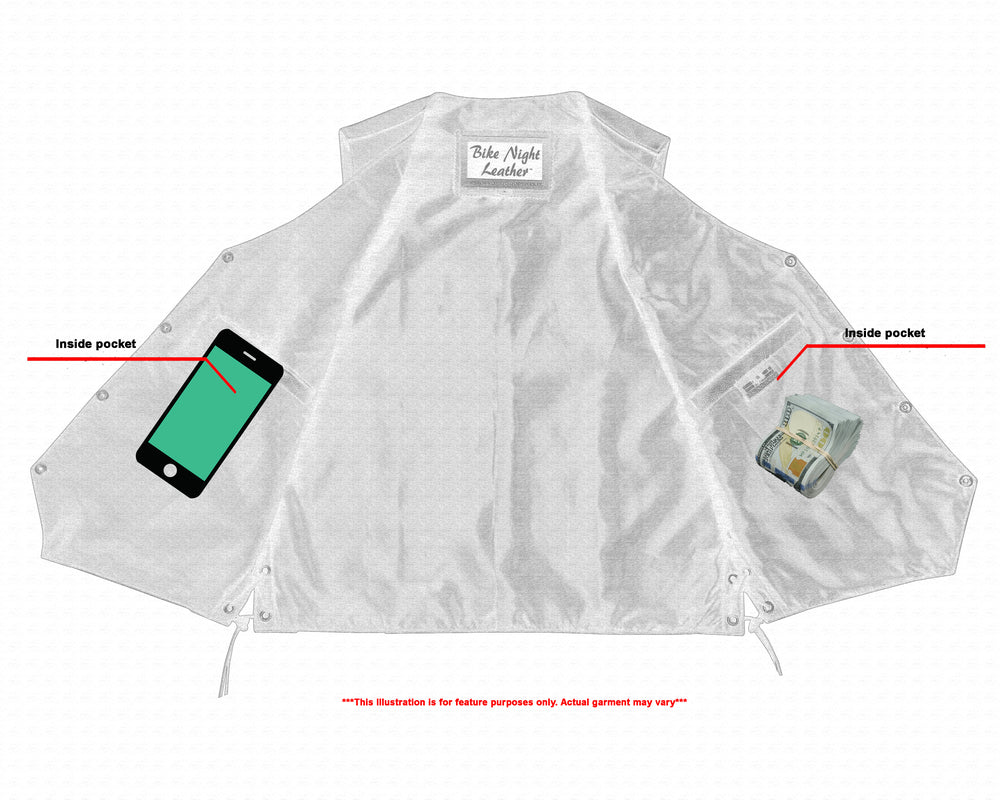 Our vests are adjustable to give you the perfect fit while you ride. Durable snaps keep the vest in place against the wind.