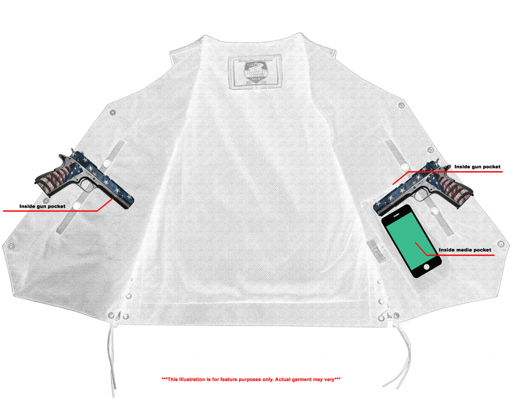 2 inside Smart Access Pockets made of special heavy-duty textile with built-in holsters and snap closure.