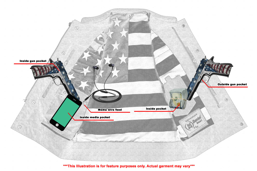 2 upgraded style Smart Access Pockets between the snap and the zipper made of special heavy-duty textile with built-in holsters and snap closure.