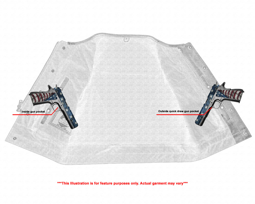 2 upgraded style Smart Access Pockets between the snap and the zipper made of special heavy-duty textile with built-in holsters and snap closure.