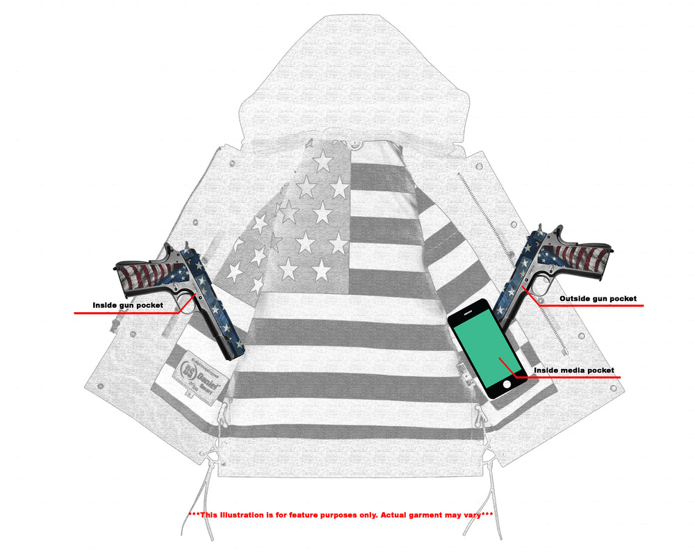 2 upgraded style Smart Access Pockets between the snap and the zipper made of special heavy-duty textile with built-in holsters and snap closure.
