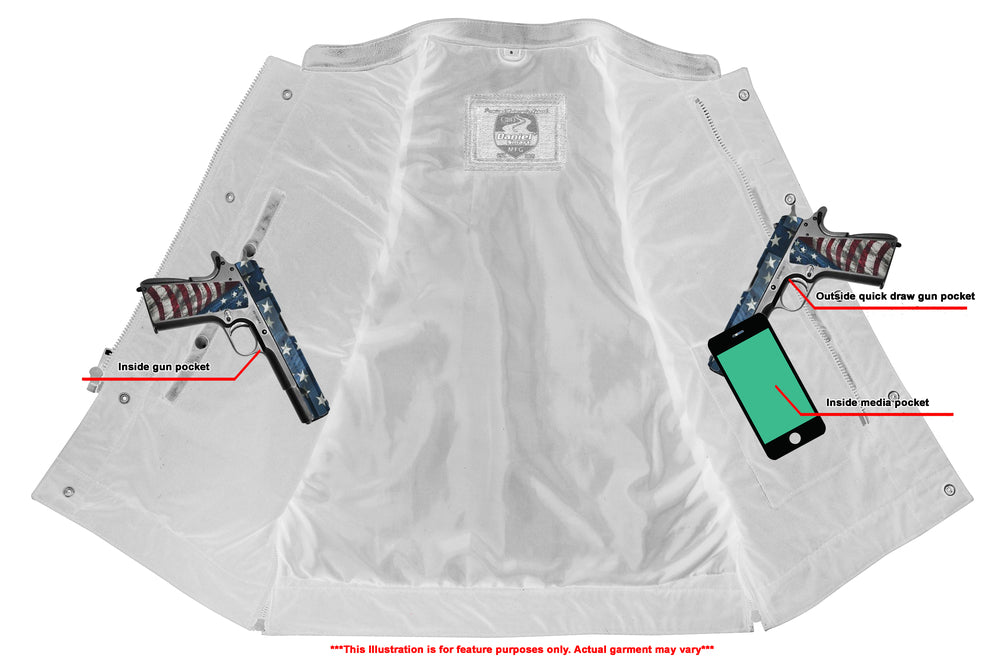 2 upgraded style Smart Access Pockets between the snap and the zipper made of special heavy-duty textile with built-in holsters and snap closure.