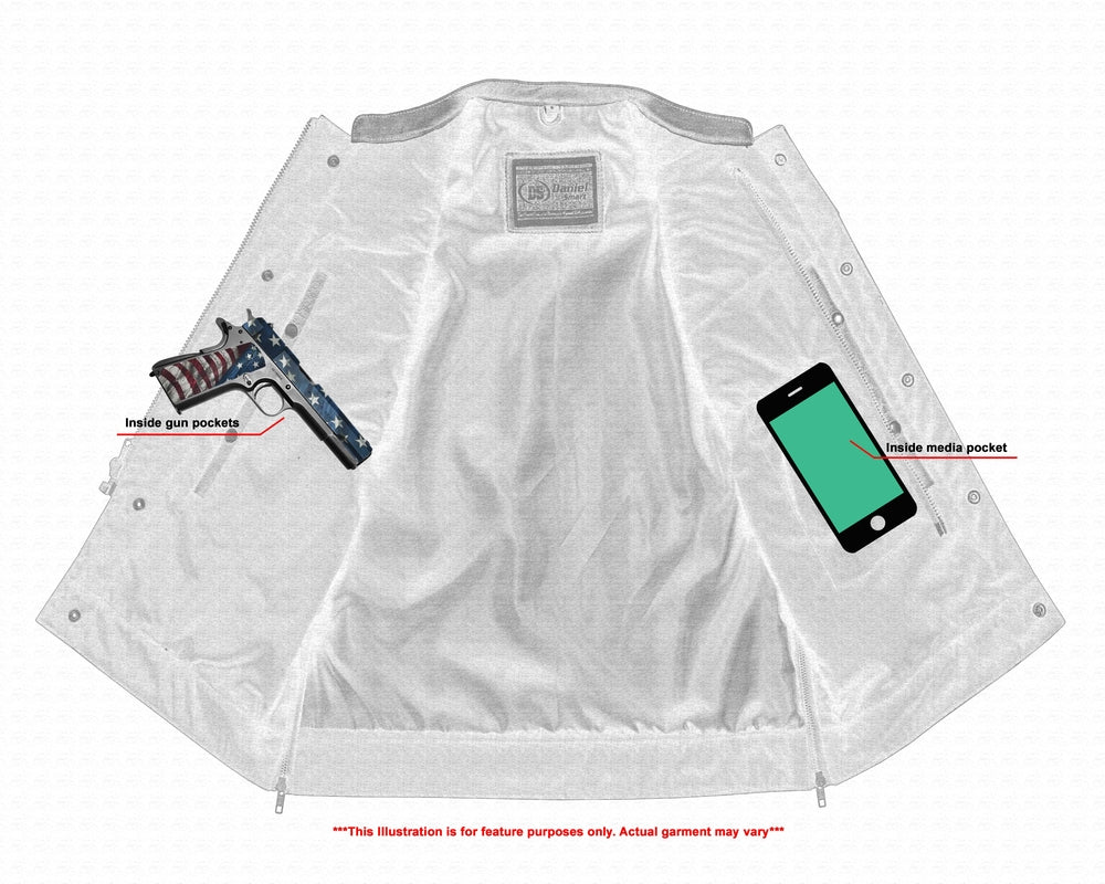 2 upgraded style Smart Access Pockets between the snap and the zipper made of special heavy-duty textile with built-in holsters and snap closure.
