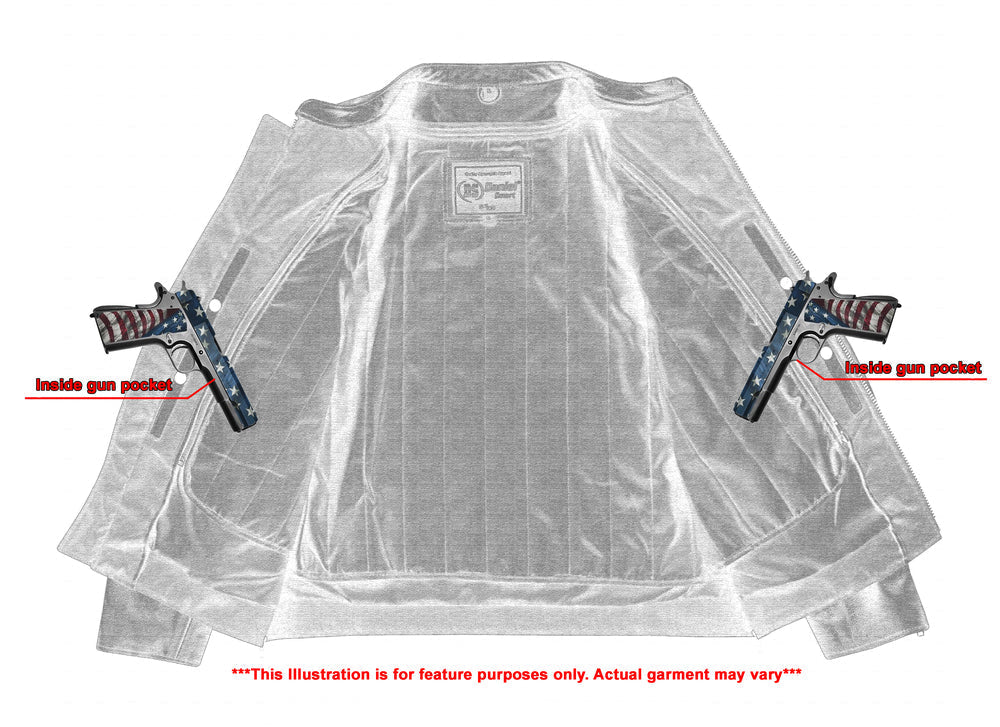 2 inside Smart Access Pockets made of special heavy duty textile with built-in holsters and snap closure.