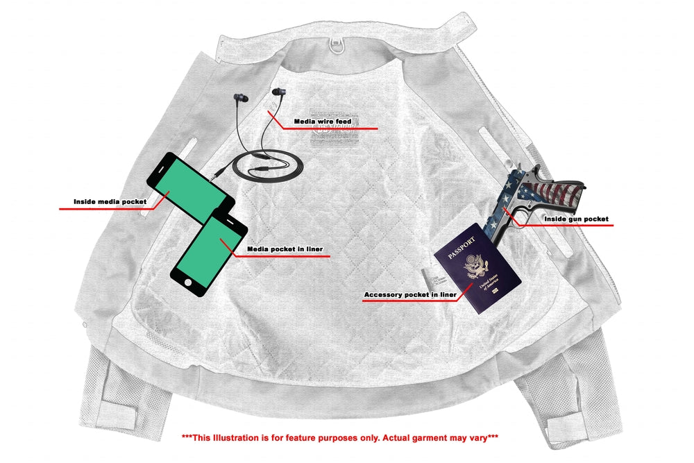 1 inside left-hand side Smart Access Pockets made of special heavy-duty textile with built-in holsters and snap closure.