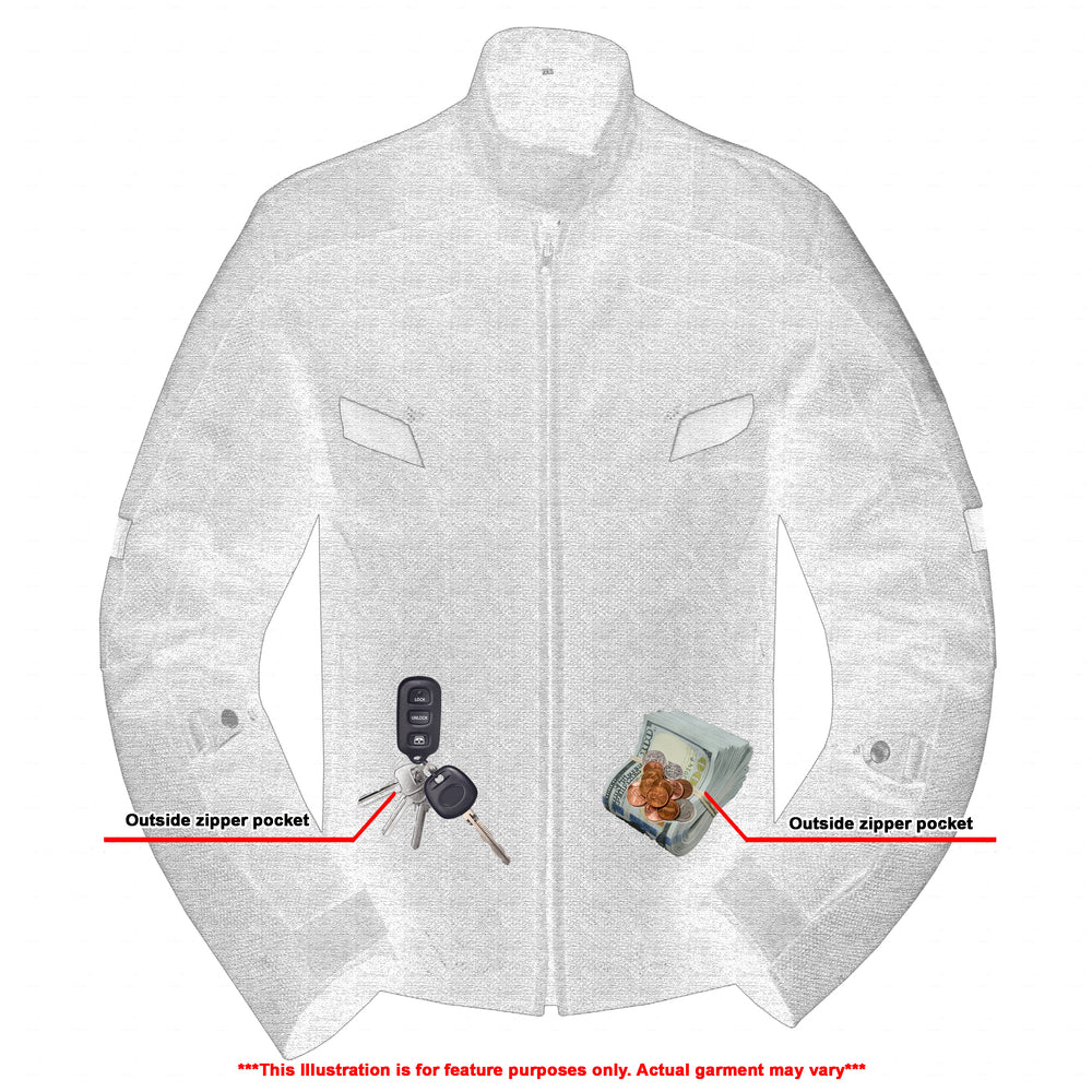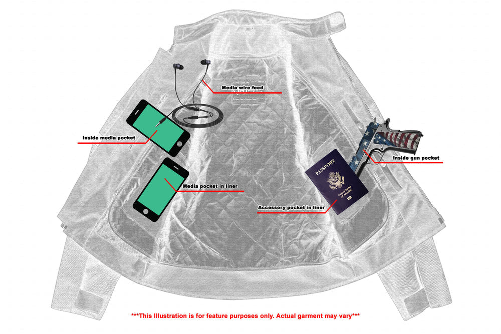 1 inside left-hand side Smart Access Pockets made of special heavy-duty textile with built-in holsters and snap closure.