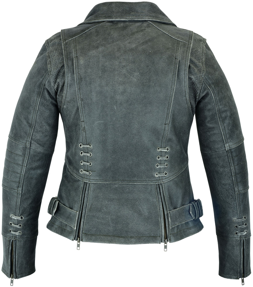 Grommet detailing with lacing accents for stylish look.