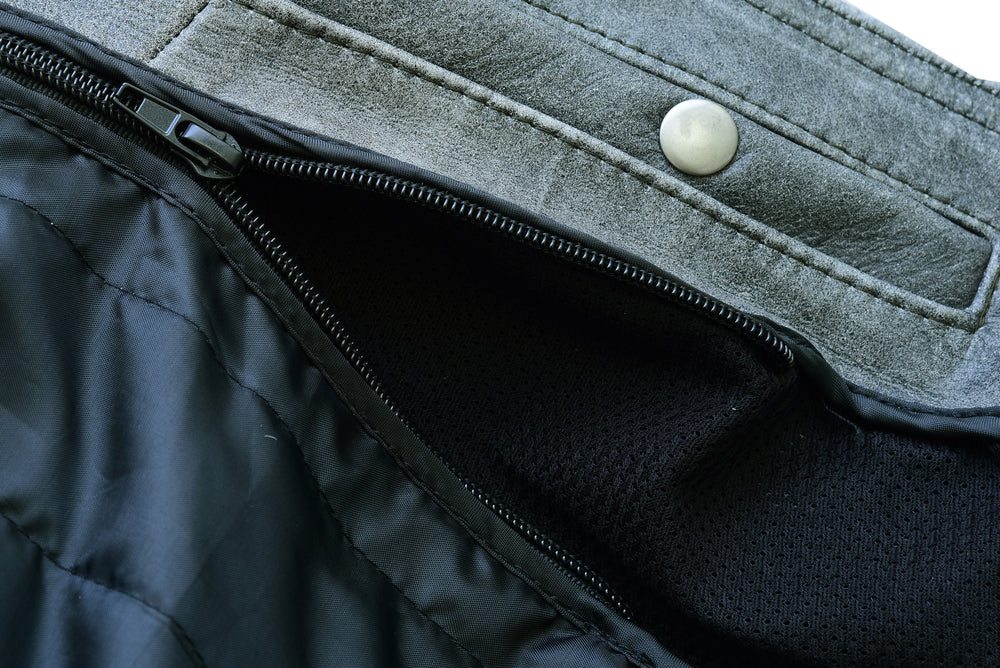Vented zipper chest pocket.