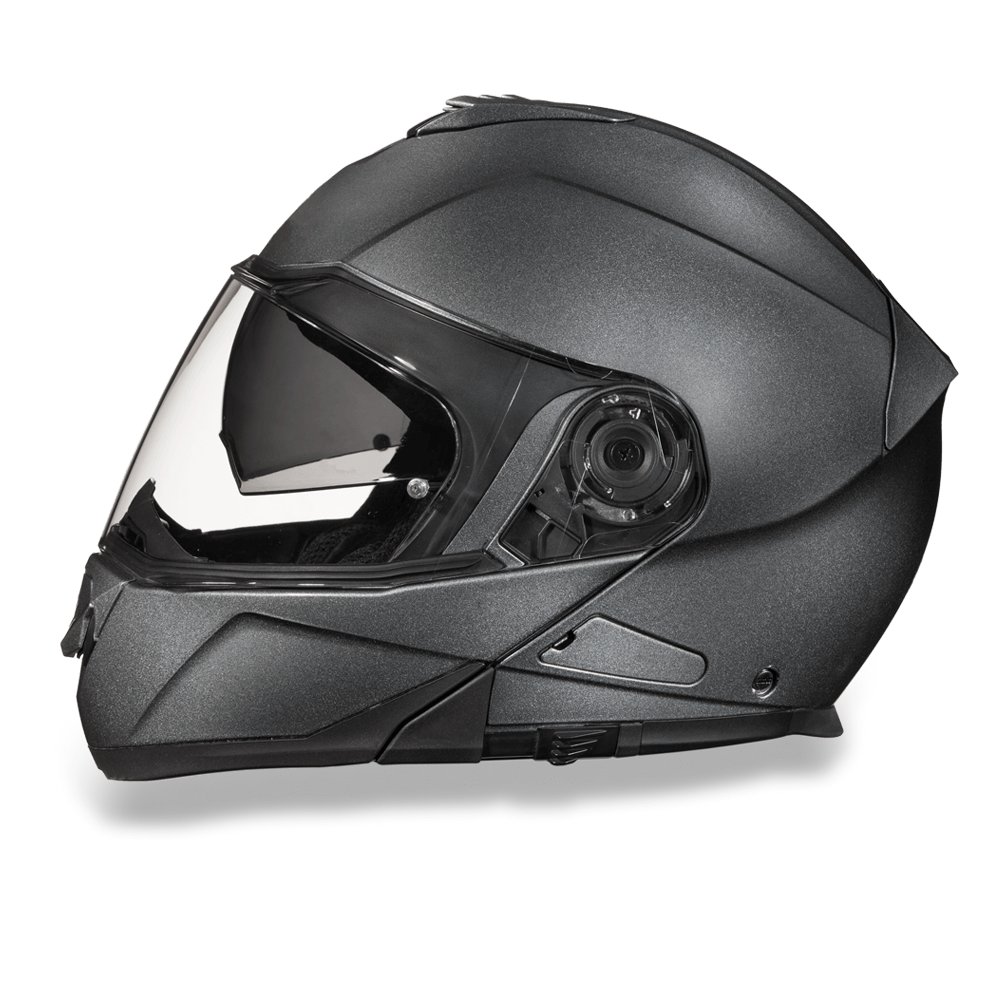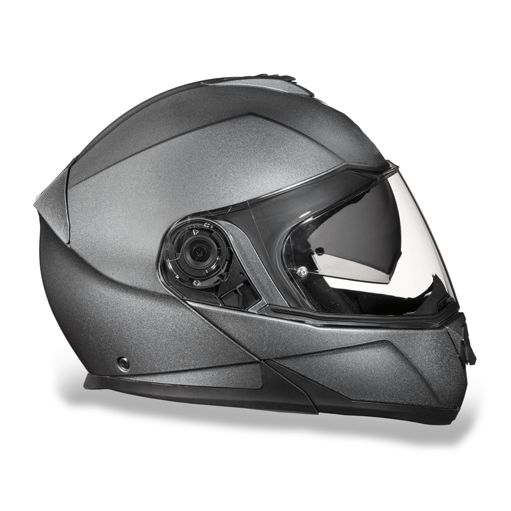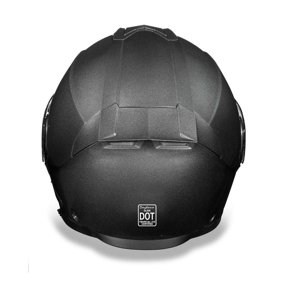 Our D.O.T. Daytona Glide Modular Helmet, With Inner Anti-Scratch Retractable Smoke Shield, In A Custom Gun Metal Grey Metallic, Meets And Exceeds D.O.T. FMVSS 218 Standards. With 2 Different Shell Sizes, You’re Sure to Get That Proportionate Fit!! This Modular Helmet features A Dual Shield System; Outer Anti-Scratch, Pinlock 30 Fitted Clear Shield And Inner Anti-Scratch Retractable Smoke Shield. Also Has A Quick Release Lock Retention System; One Finger Release Lever For Easy Detachment, Adjustable Chin And Forehead Ventilation And A Removable, Hand Washable Interior (Moisture Wicking Fabric). Bluetooth Ready. Free Head Wrap And Draw String Bag Included. Sizes Range From XS-4XL.