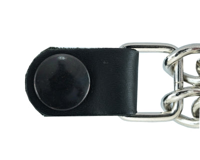 The vest extender also features a chrome motorcycle chain design, giving it a rugged and stylish look.