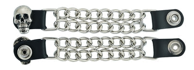 The vest extender also features a chrome motorcycle chain design, giving it a rugged and stylish look.