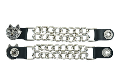 The vest extender also features a chrome motorcycle chain design, giving it a rugged and stylish look.