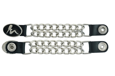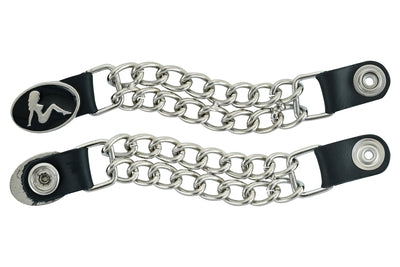 The vest extender also features a chrome motorcycle chain design, giving it a rugged and stylish look.