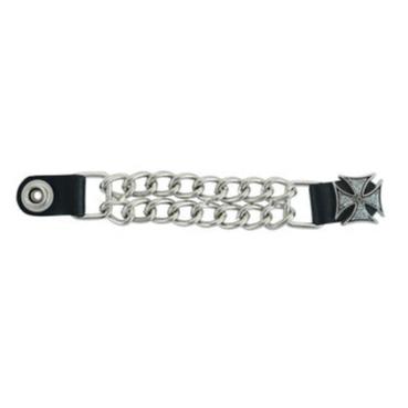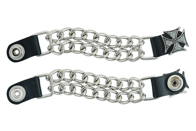 The vest extender also features a chrome motorcycle chain design, giving it a rugged and stylish look.