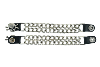The vest extender also features a chrome motorcycle chain design, giving it a rugged and stylish look.