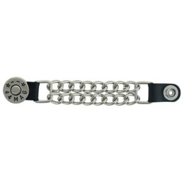 The vest extender also features a chrome motorcycle chain design, giving it a rugged and stylish look.