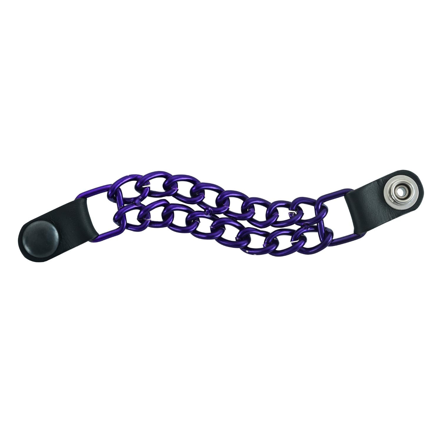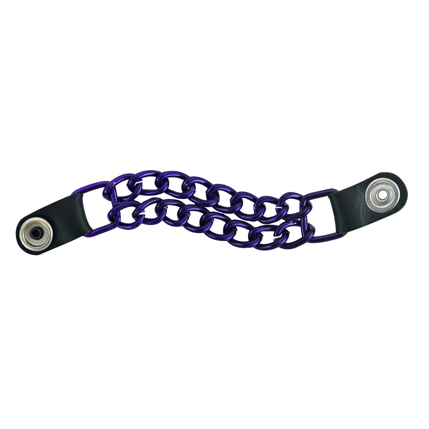 The vest extender also features a chrome motorcycle chain design, giving it a rugged and stylish look.